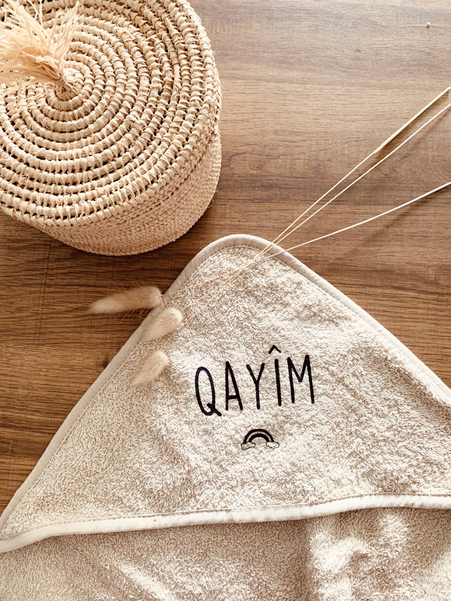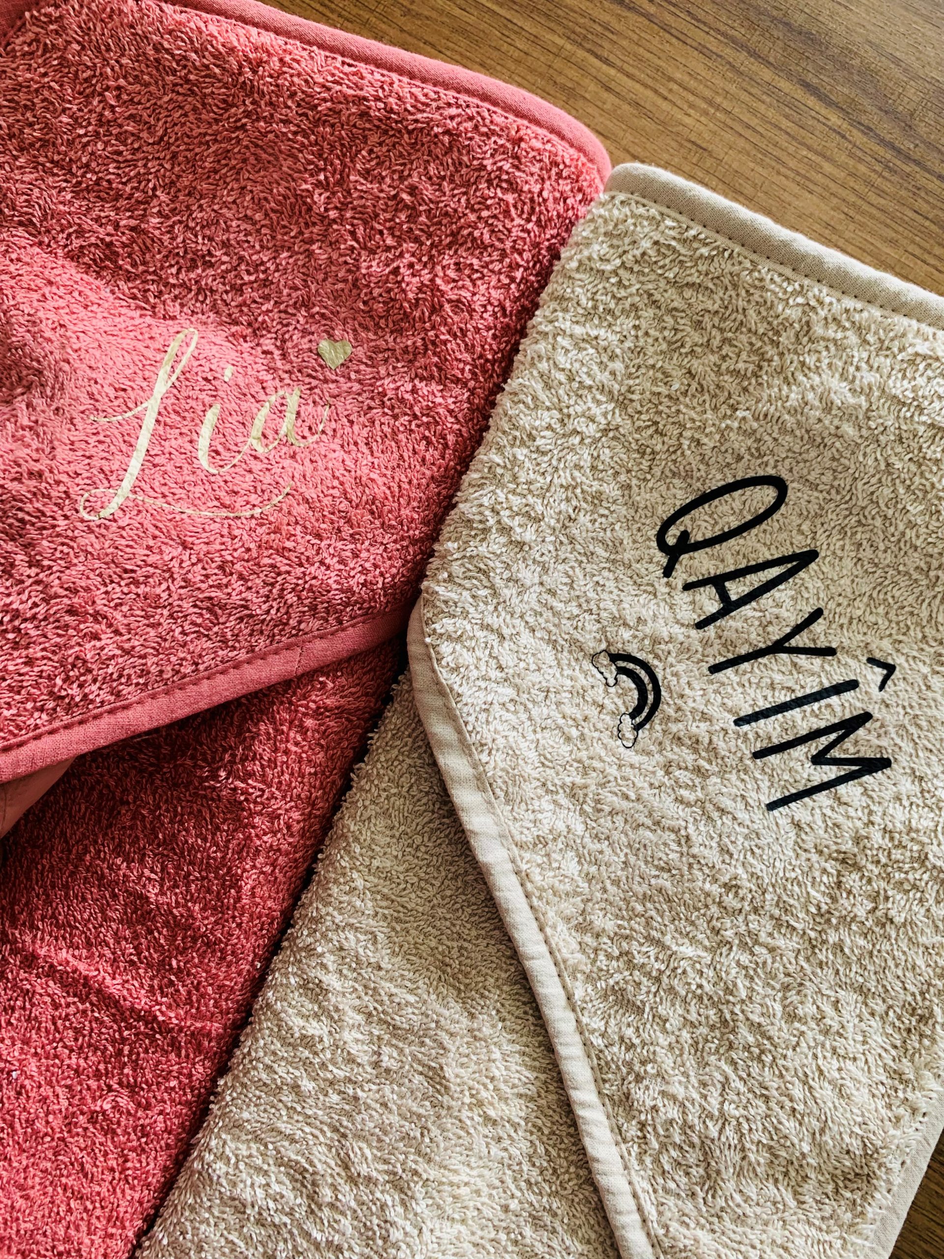 Cadeau unique pour une naissance, un moiniversaire, une annonce de grossesse Laissez place à votre imagination afin de personnaliser la cape de bain de bébé avec son prénom, surnom, sa date ou son heure de naissance.